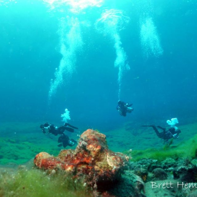 This site is fresh clear water with 3 interconnecting ponds that you can snorkel or scuba dive with open water certification. Yabbies are common in and around the grasses.