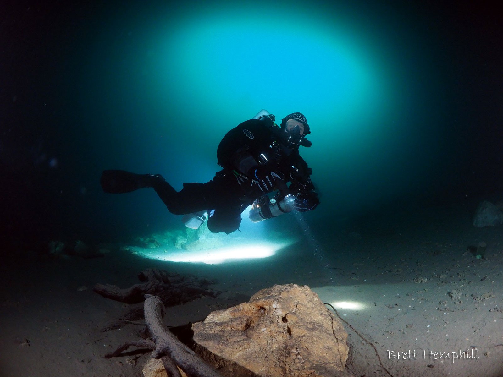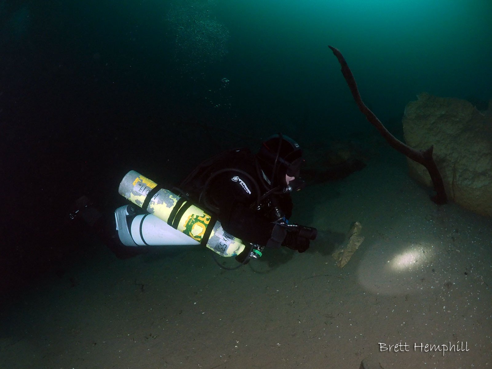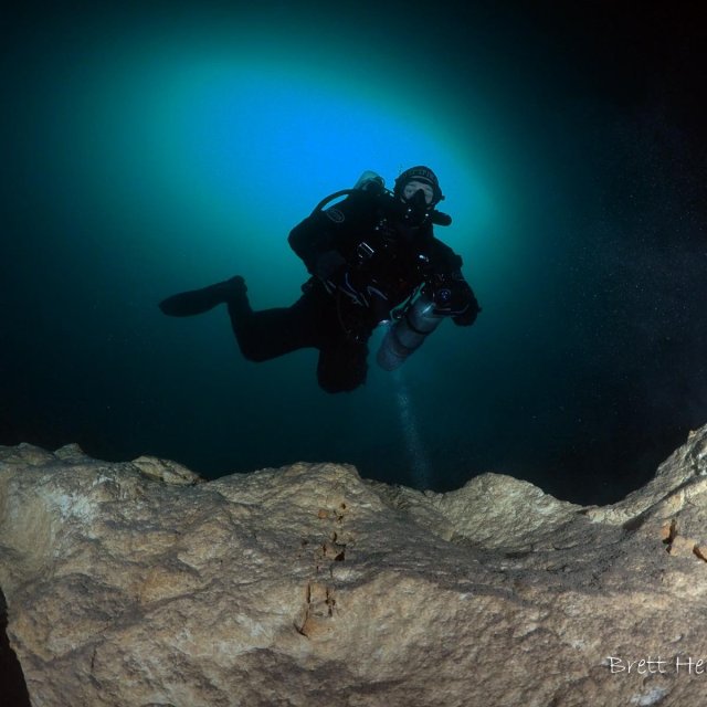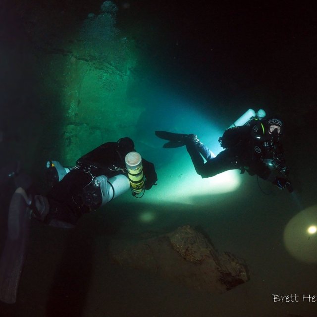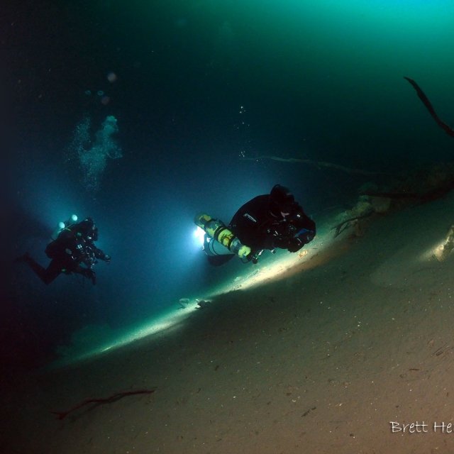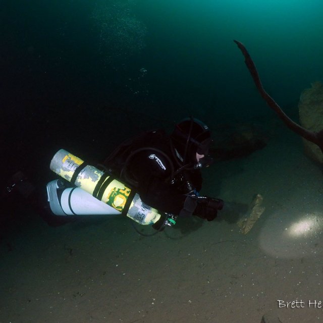 Excellent deep cavern located in Mount Gambier. The owner is Peter Norman, who graciously lets CDAA members dive it anytime he is home after 9:00am in the morning. On the day the images were taken it was around 20M Viz. As you can see there is an old harvester at the bottom, which makes an interesting check stop for divers.