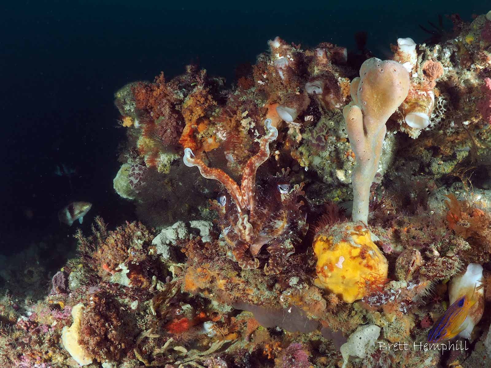 Cray Spot is an excellent open water diving location as it starts at around 12Metres and drops off to around 20M. It is near Boarfish Reef and has some unique and very pretty reef formations where you can find cuttlefish, crayfish and it is thus a fantastic photographic scene.