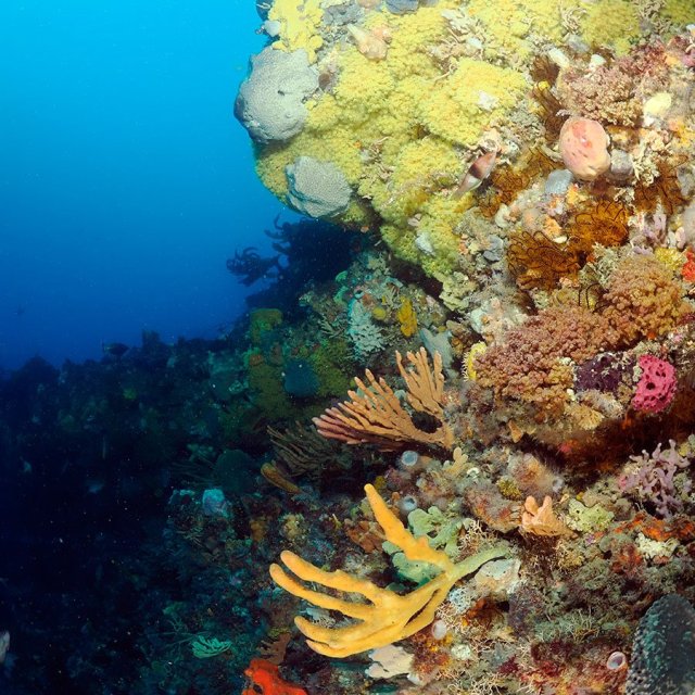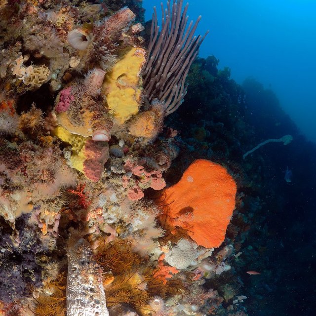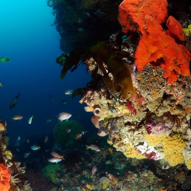 This dive provides dives of all experience levels and excellent location to investigate at slack water on either tides. The walls are covered in Yellow Zoanthids and the fish life is plentiful and varied.