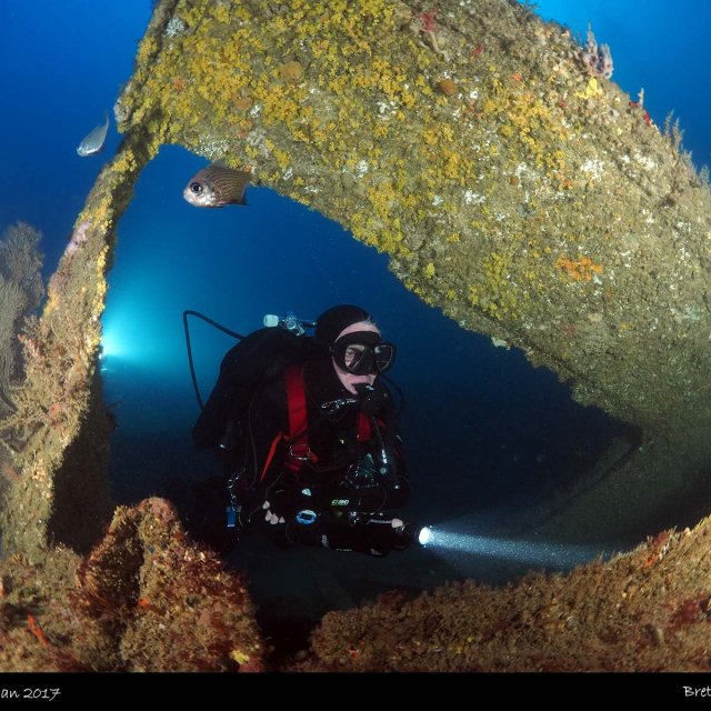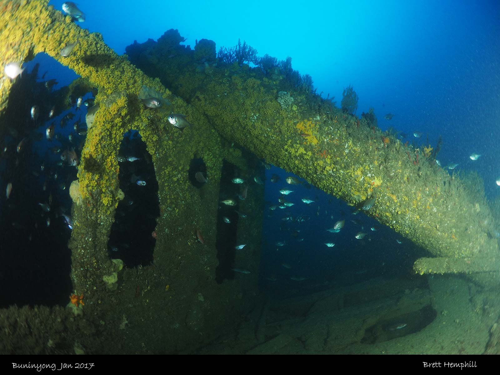 She now lies in 54 meters of water with her bow facing toward Barwon heads. There are two larger boilers and also a smaller one towards the stern. The bridge is still in tact but has one of the exhaust stacks lying across it, see gallery. It makes for a great dive as there is much of the wreck to investigate from bow to stern.