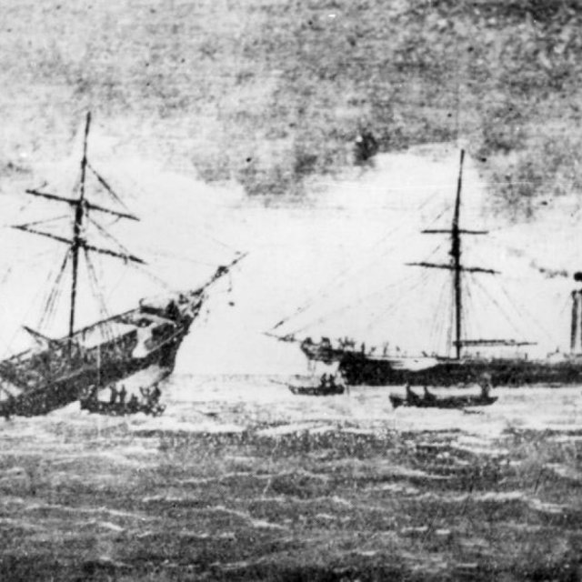 There is an artists impression of the collision in our gallery and is held by John Oxley Library, State Library of Queensland., Public Domain, https://commons.wikimedia.org/w/index.php?curid=14443341