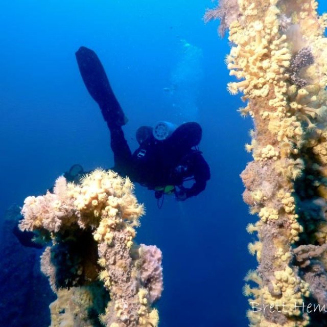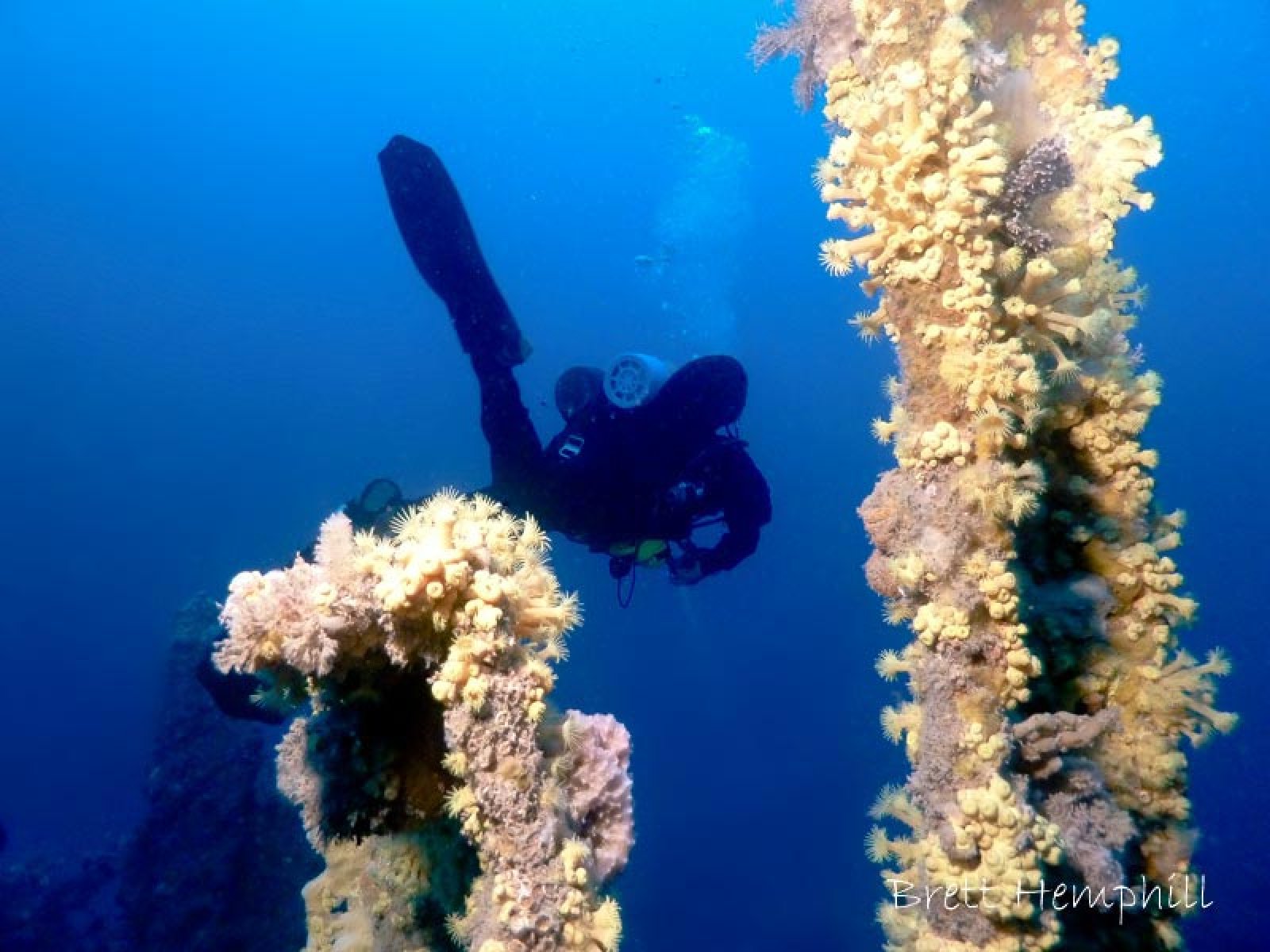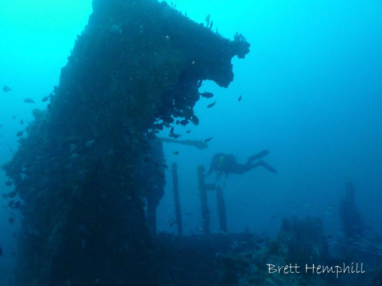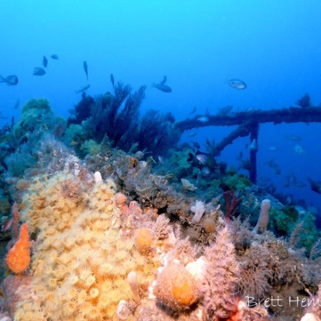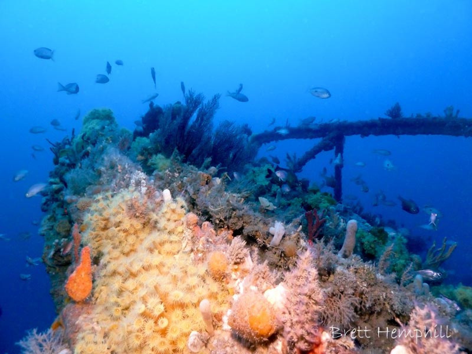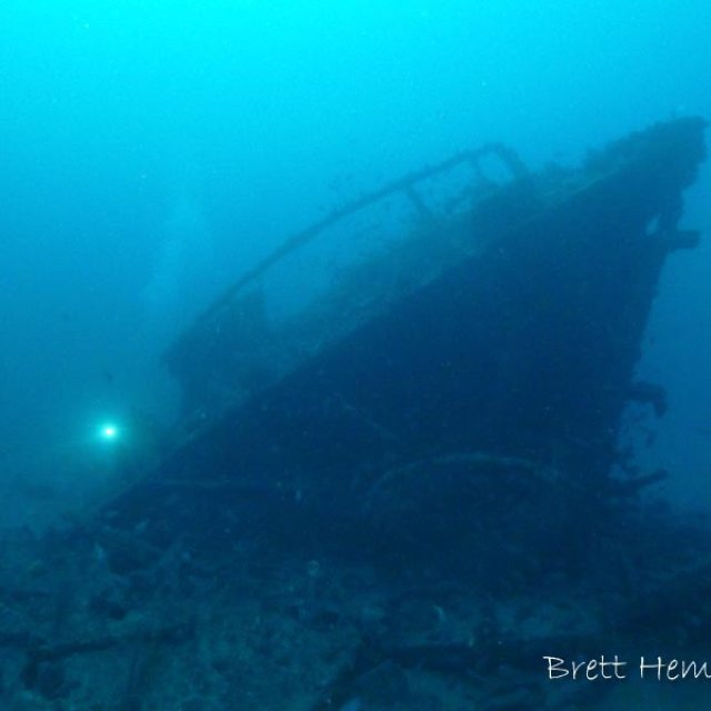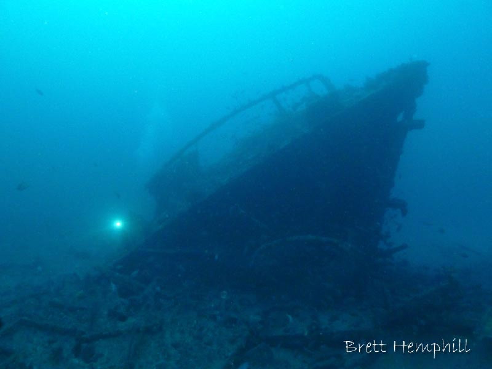 It is a great wreck with much of the hull still in tact, fish life in abundance and the props are still on the wreck.