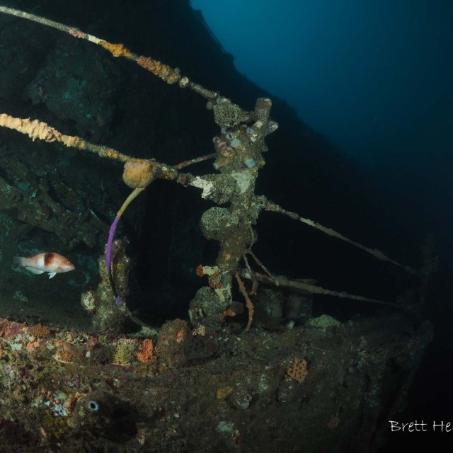 The ship was scuttled in 2009 and sits in 30M of water with the top at around 11M. It can be penetrated on calm days. It is the largest ship that can be dived in this region.
