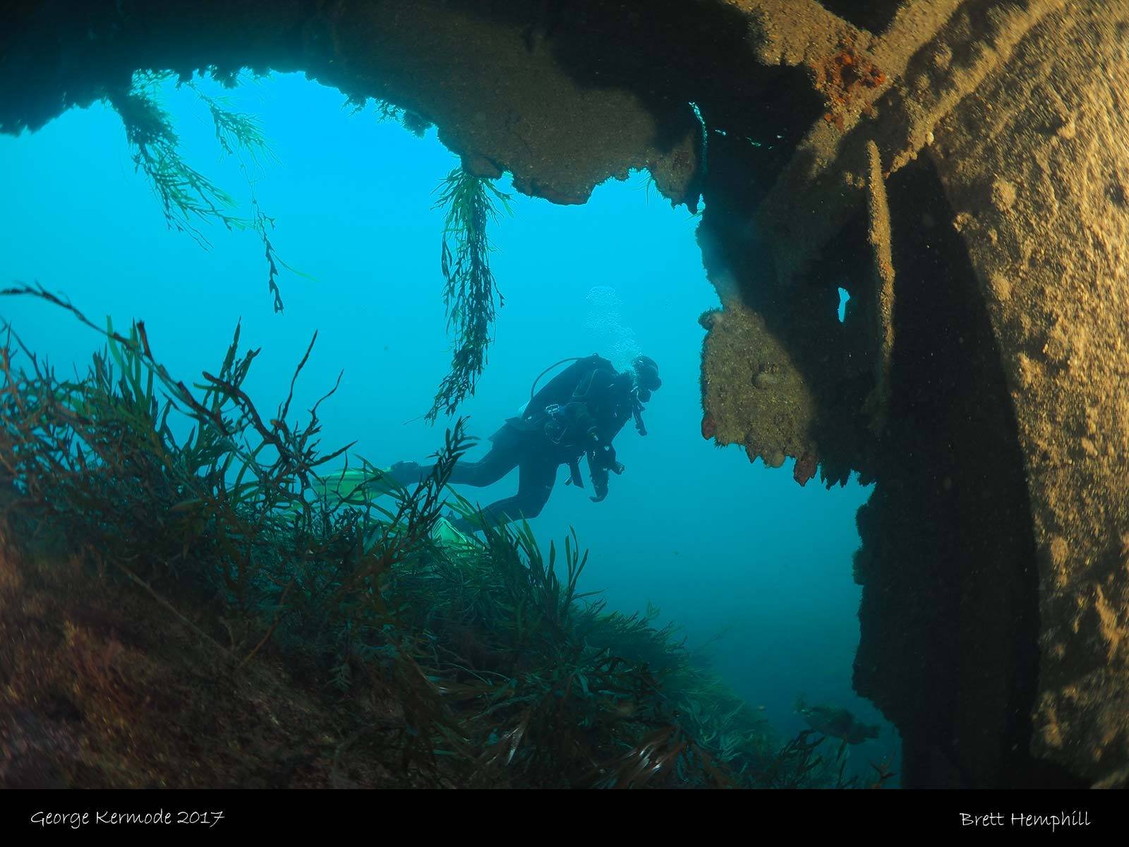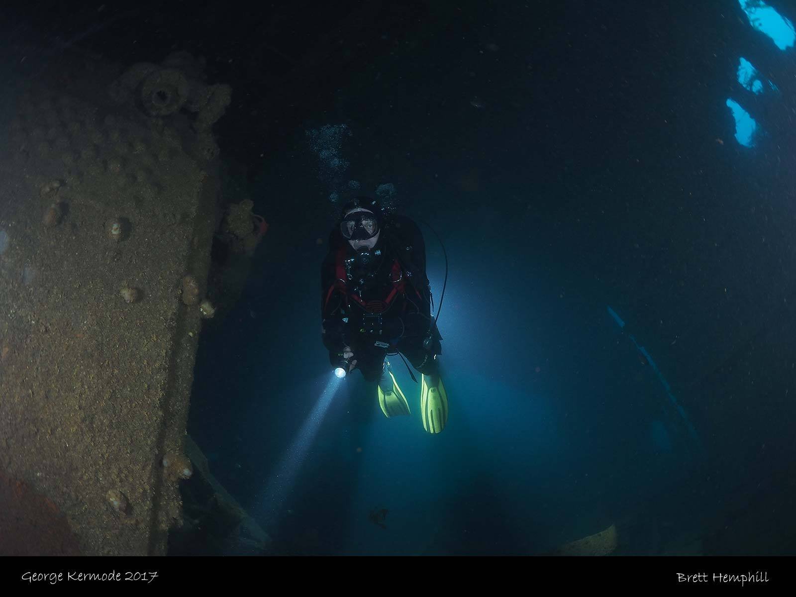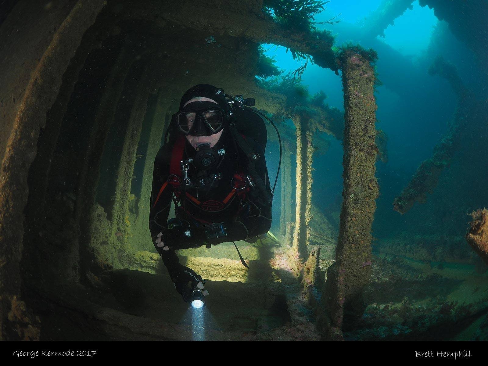 Built in 1914 by Fleming and Ferguson in Paisley Scotland as the Sir William Matthews, she was a twin screwed steam bucket dredge with an overall length of 230ft a beam of 44ft and a draught of 17ft. She displaced 1380 tons. She was purchased by the Melbourne Harbour trust on October 10 1941 and after an extensive refit she was renamed the TSS George Kermode and was used to dredge the Port of Melbourne. She was scuttled on the 1 April 1976 as an artificial reef off Phillip Island.