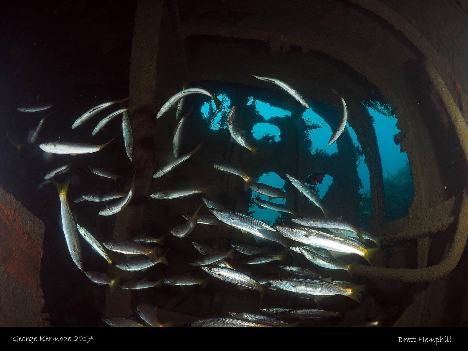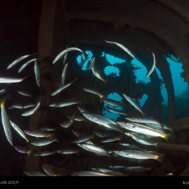 There is an abundance of fish life, especially in the engine room.