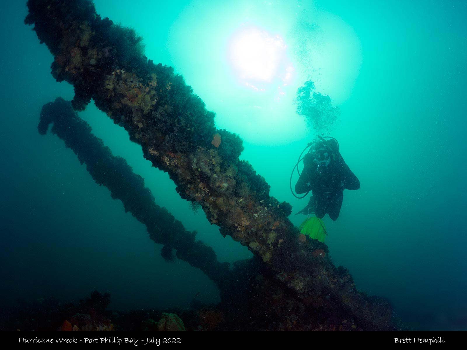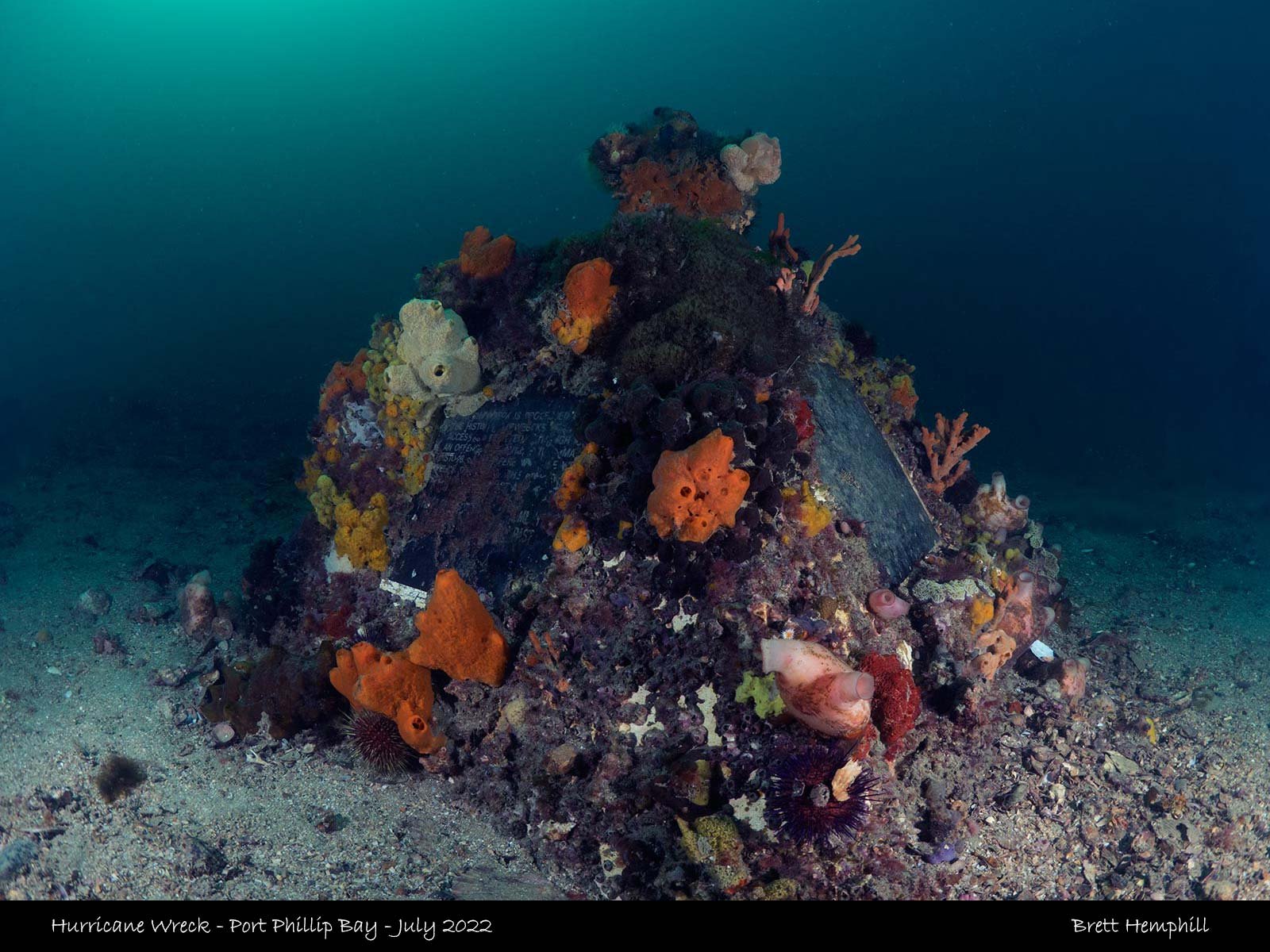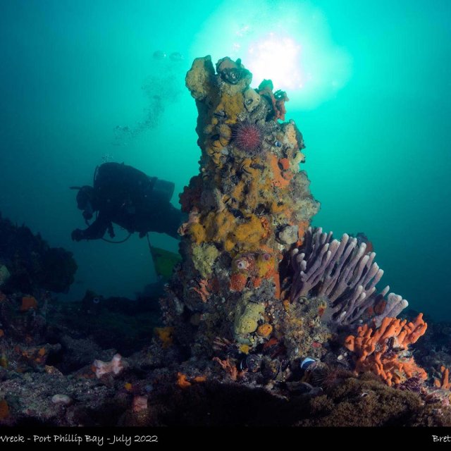 The wreck was discovered by divers in 1971, these days two of the three masts can be seen and the general shape of the boat, There is an abundance of sponges and invertebrates growing, it provides a small haven for local fish life such as morwong, ping perch, moonlighters and many more.