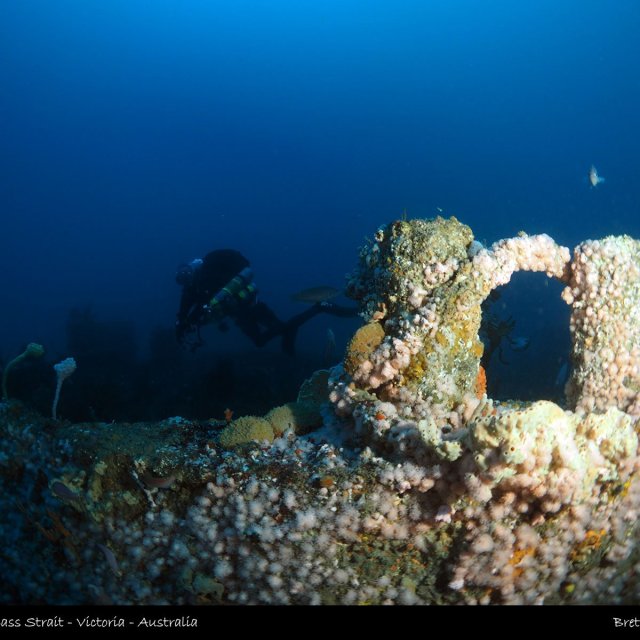 There is also a large wheel (cog) that sits on the ocean floor on the starboard stern around 15 metres away, this adds even more to a great dive, whereby you can swim over the wheel and then back to the ship before ascending.