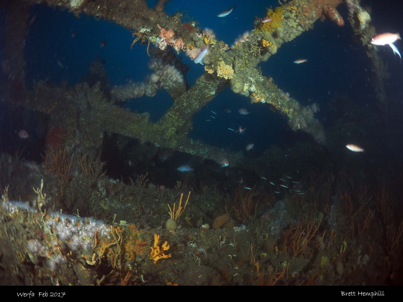 The bridge is a also still intact and often has much fish life in and around it. It takes more than one dive to discover the wreck she is quite large, well preserved and offers interesting areas to check out.